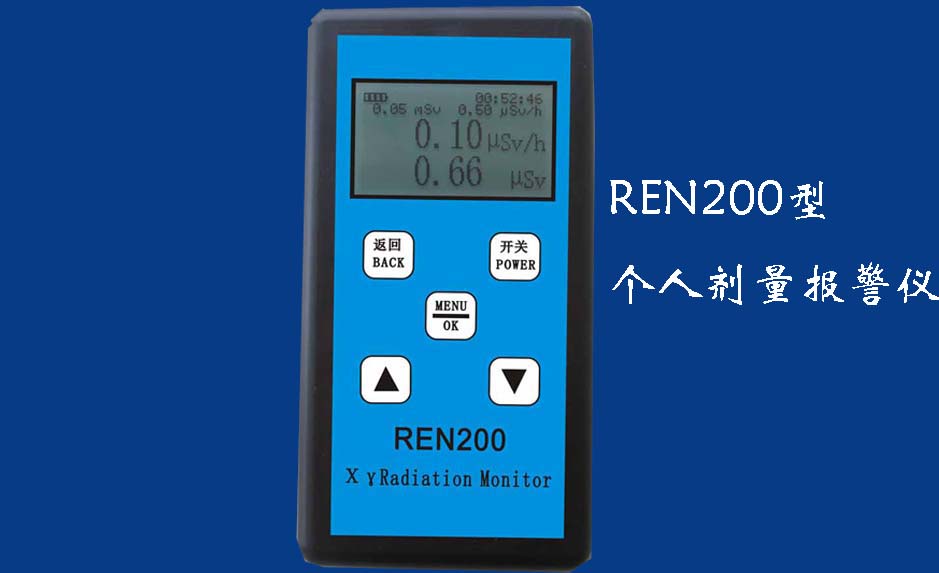 • REN200A 個(gè)人輻射檢測儀REN200A型X、γ輻射個(gè)人劑量當(dāng)量HP(10)監(jiān)測儀(簡稱:個(gè)人劑量報(bào)警儀)內(nèi)置高靈敏度蓋格計(jì)數(shù)管為探測器,主要用來監(jiān)測各種放射性工作場所的X、γ以及硬β射線的輻射,具有響應(yīng)快,測量范圍寬的特點(diǎn)。能顯示工作場所的劑量當(dāng)量率和累積劑量,更換電池時(shí),日期及累積數(shù)據(jù)能永久保存?蛇x配RenRiPersonal個(gè)人劑量管理軟件,該軟件可存儲多個(gè)人的歷史數(shù)據(jù),能記錄日累積、月累積、年累積、輻照時(shí)長、計(jì)算平均劑量率、扣除或不扣除本底輻射,且以文字和圖譜的方式展現(xiàn)數(shù)據(jù)。廣泛應(yīng)用于核電站、加速器、鋼鐵、化工、同位素應(yīng)用、工業(yè)X、γ無損探傷、放射醫(yī)療、鈷源治療、γ輻照、放射性實(shí)驗(yàn)室、核設(shè)施周圍環(huán)境監(jiān)測等領(lǐng)域中的
